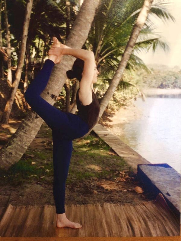 In 1999, I made my first trip to India. It felt essential to learn yoga within its own cultural and historical context. I lived at one of the Sivananda Yoga ashrams in South India. For several weeks, I slept on a wooden bed, ate with my hands, and meditated by the lake at 5 a.m. This was my first deep immersion in pranayama—long hours spent working with energy. It has created more release in my body and the effects were showing in taking up Natarajasana (the dancer pose as shown here).